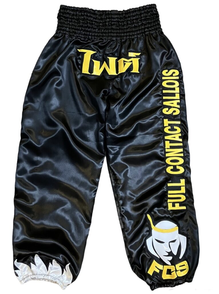 Customized boxing shorts from satin or another fabric with your name or gym name are great for any boxing fight event or training boxing, kickboxing, k-1 trunks Muay Thai etc.