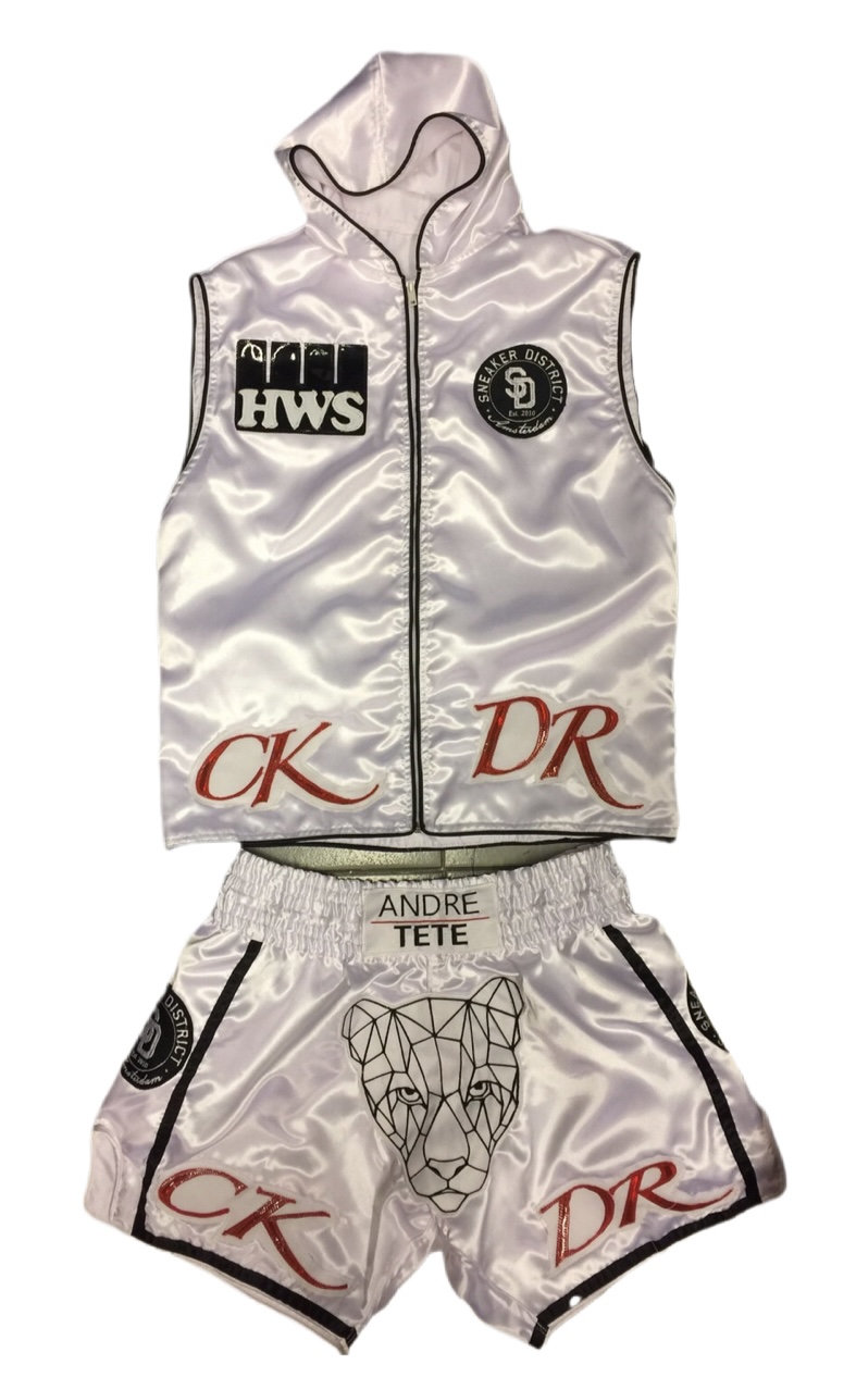 Customized boxing shorts from satin or another fabric with your name or gym name are great for any boxing fight event or training boxing, kickboxing, k-1 trunks Muay Thai etc.