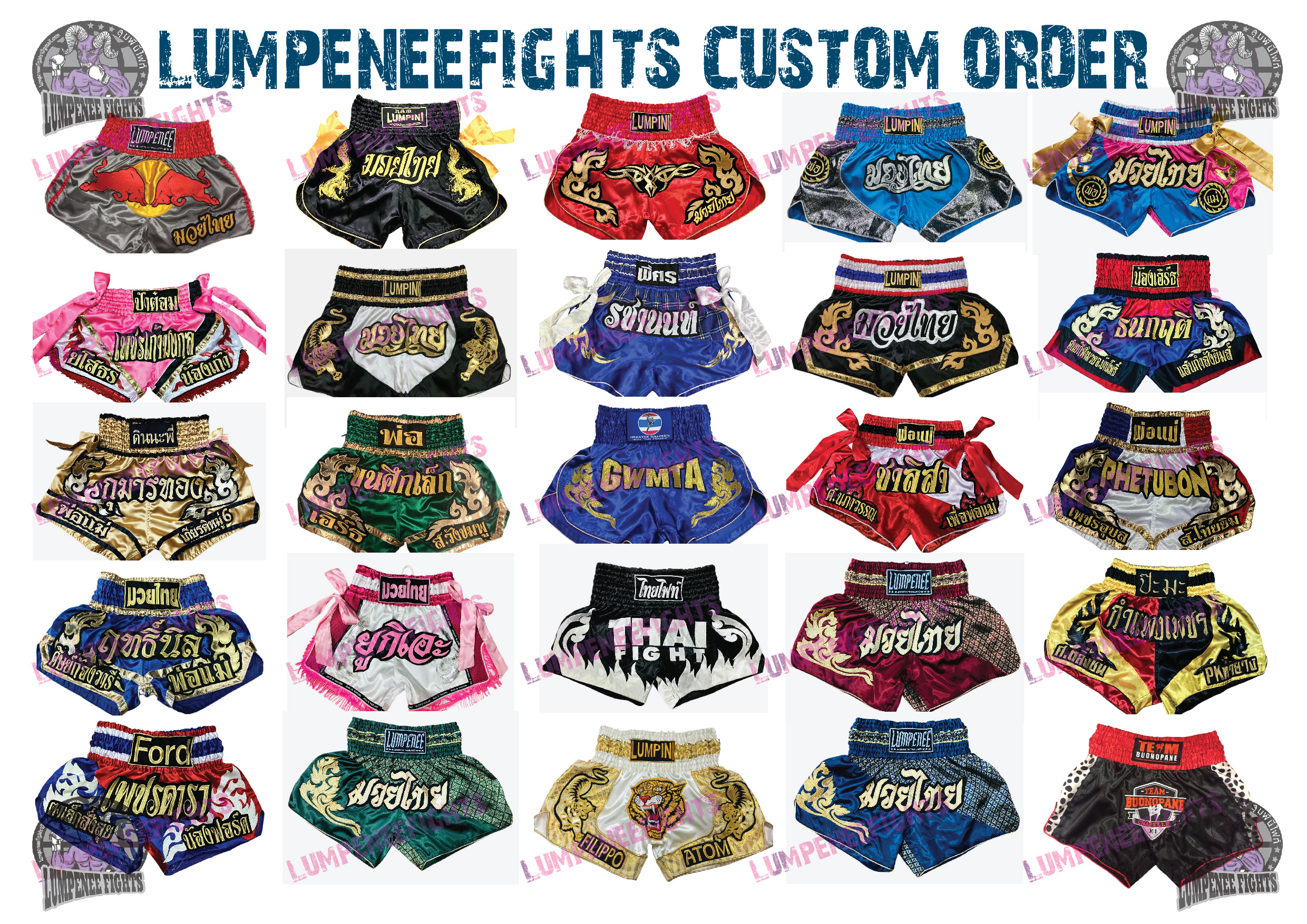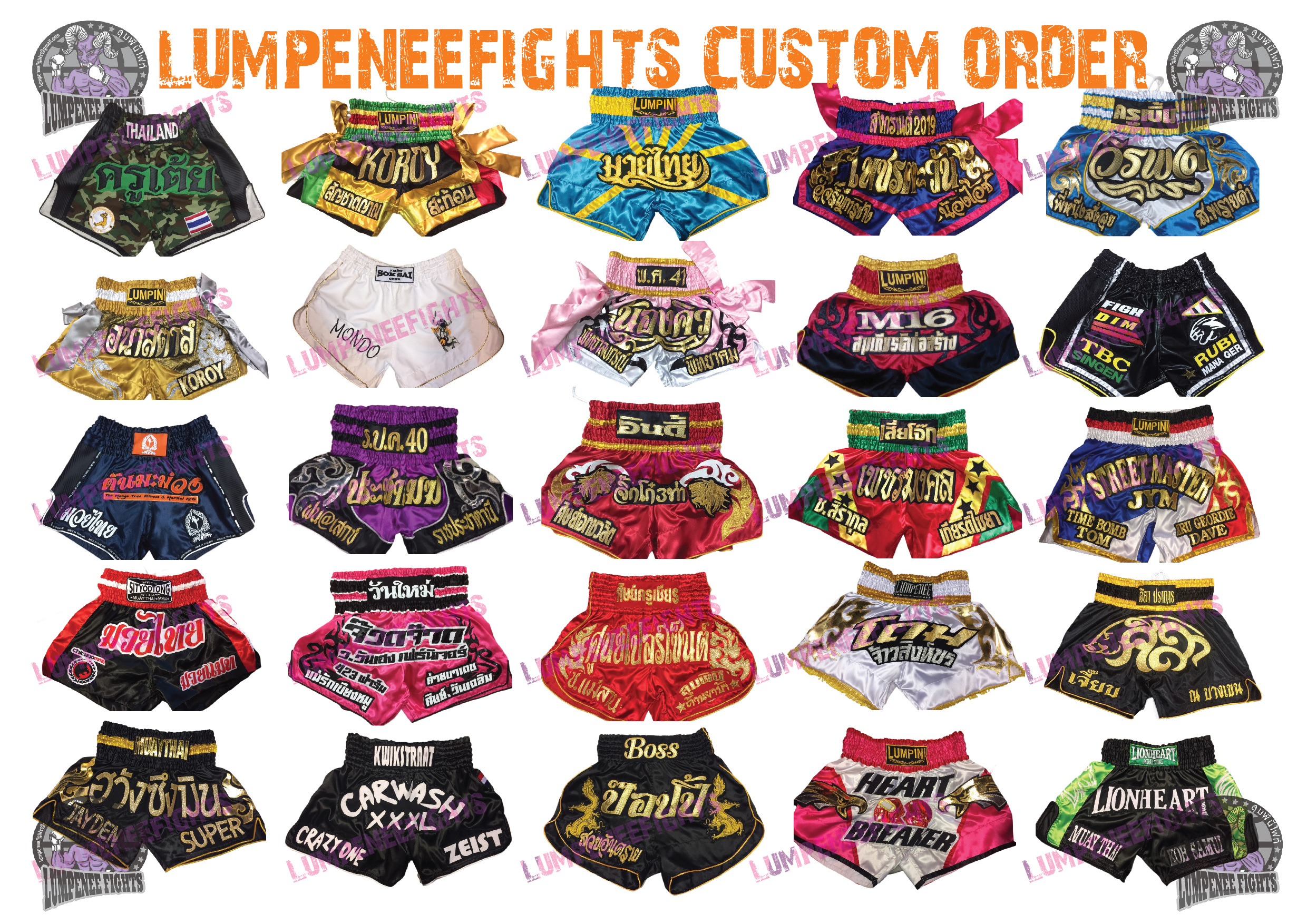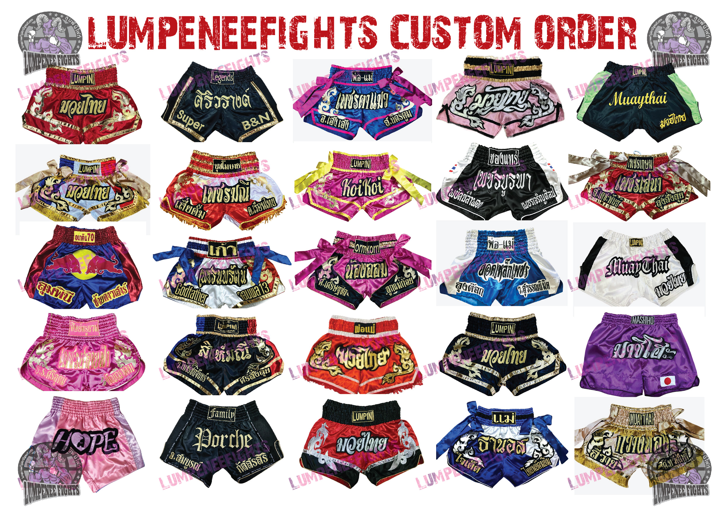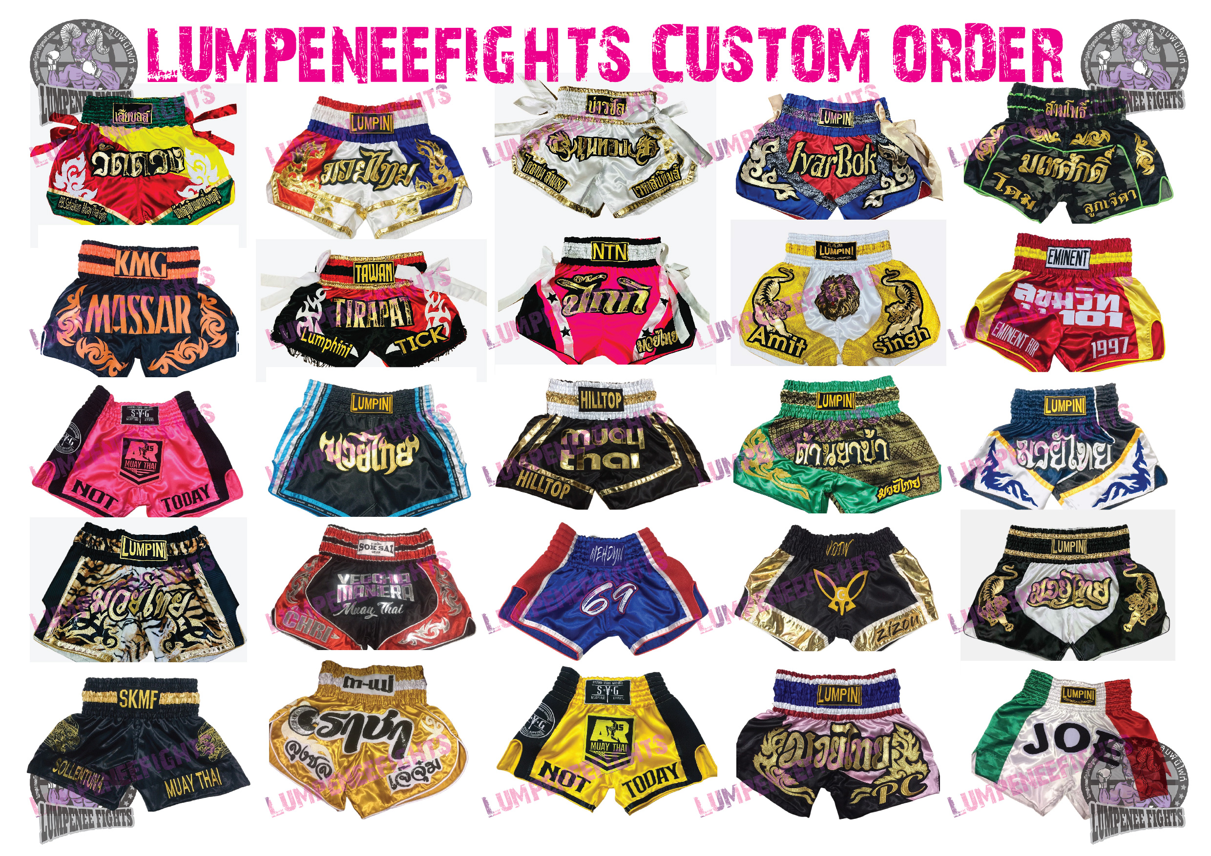 Custom Muay Thai Shorts, personalized boxing trunks by Lumpeneefights, We make premium boxing shorts for boxers and fighters around the world.