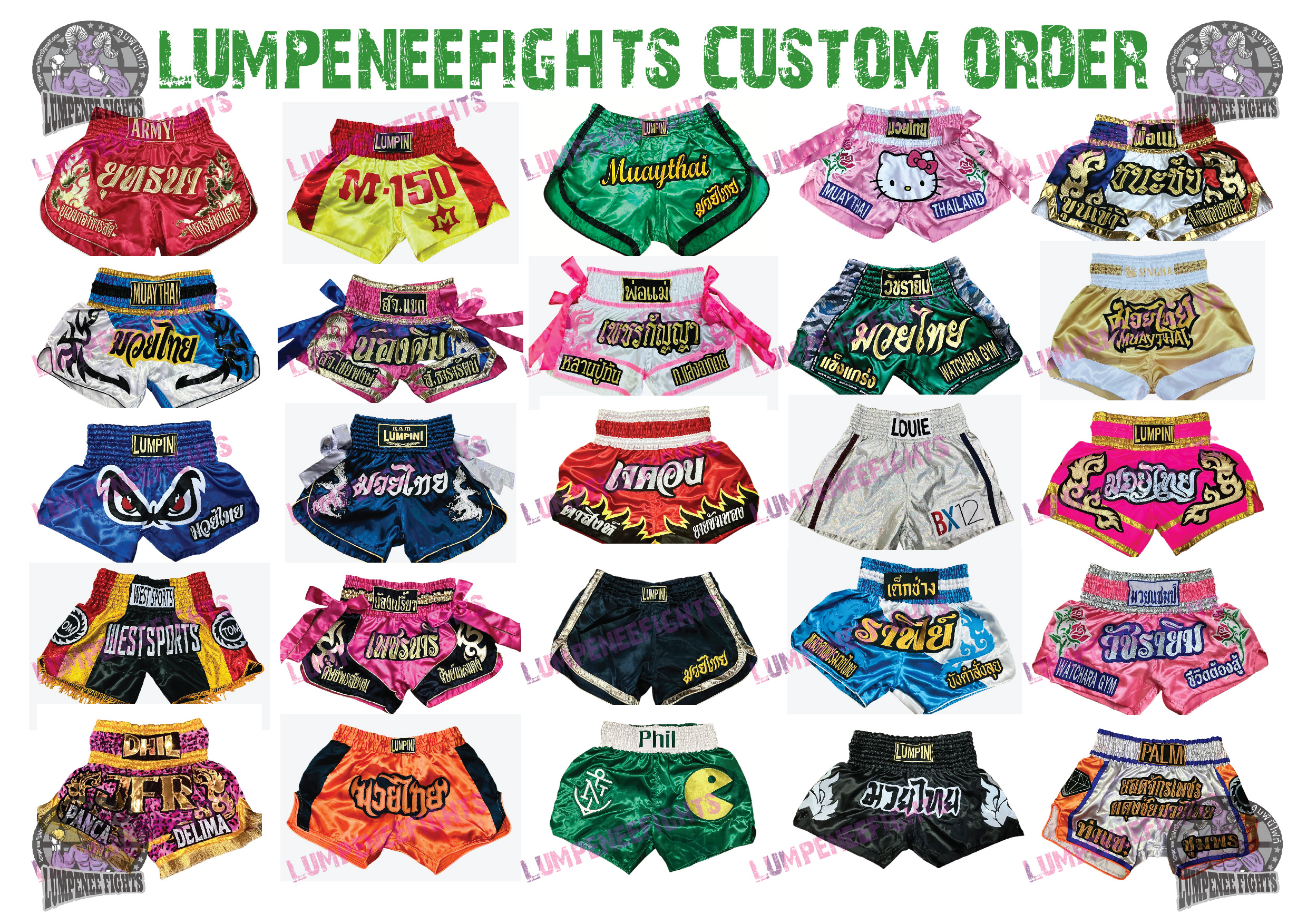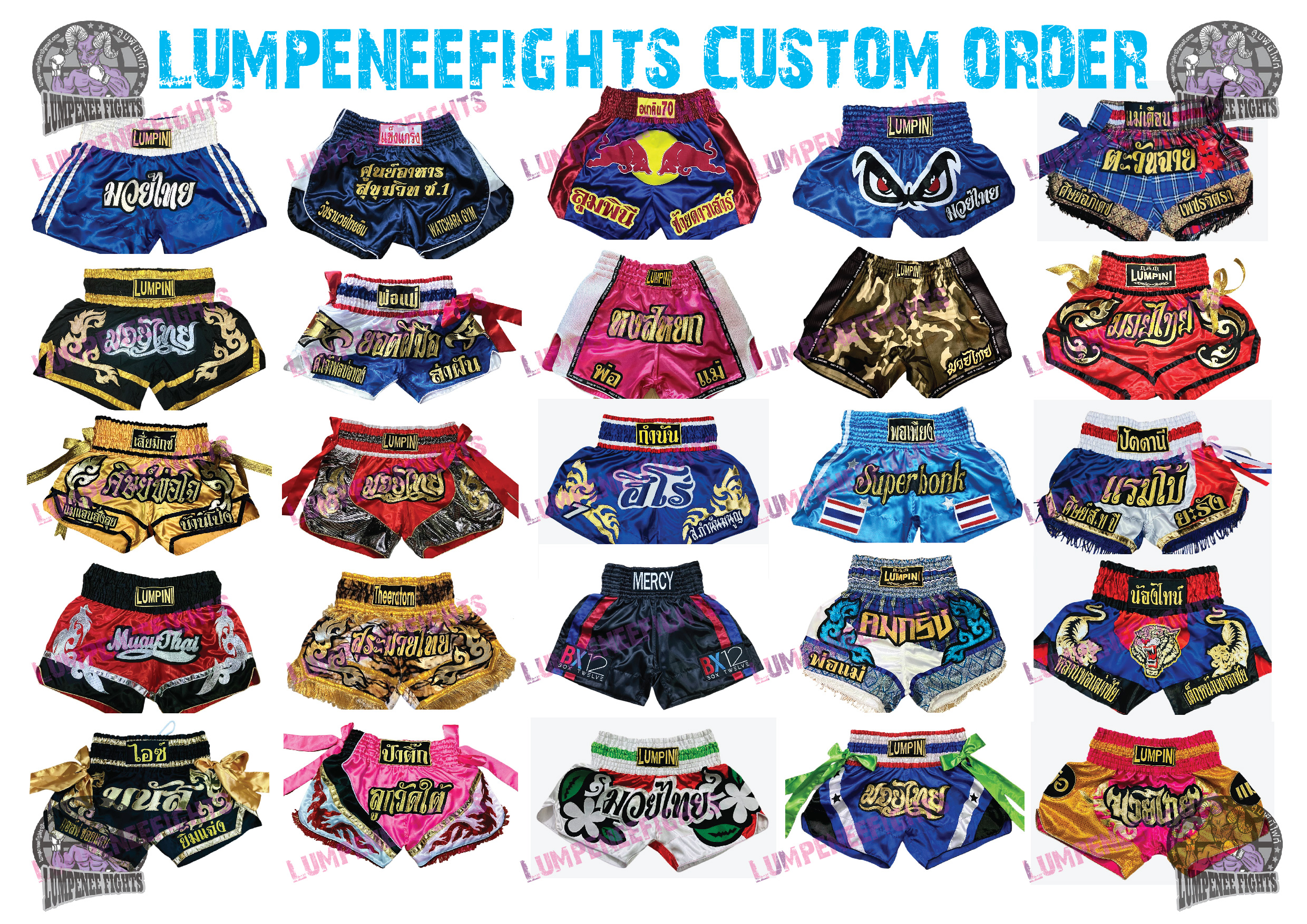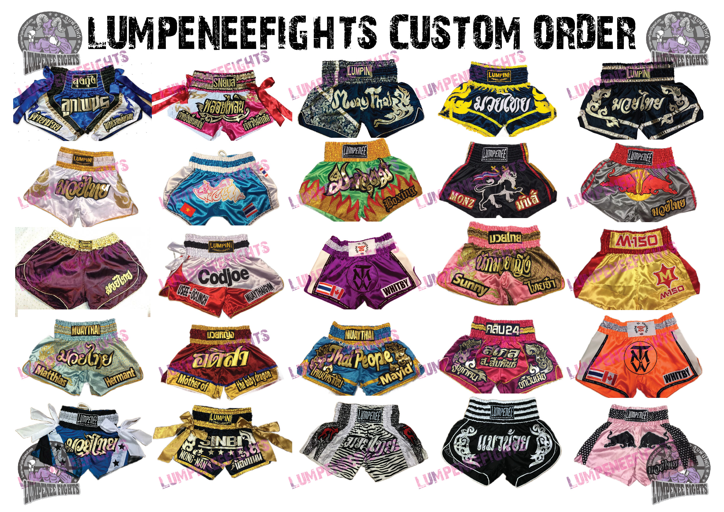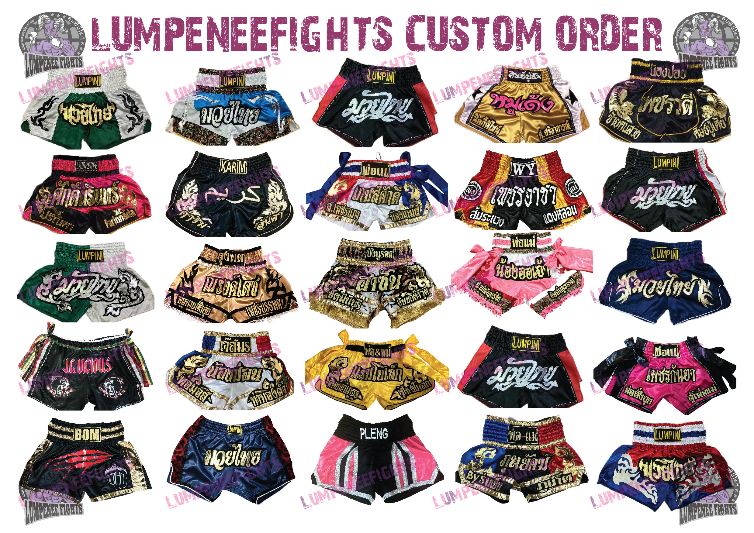 Custom Muay Thai Shorts, personalized boxing trunks by Lumpeneefights, We make premium boxing shorts for boxers and fighters around the world.
