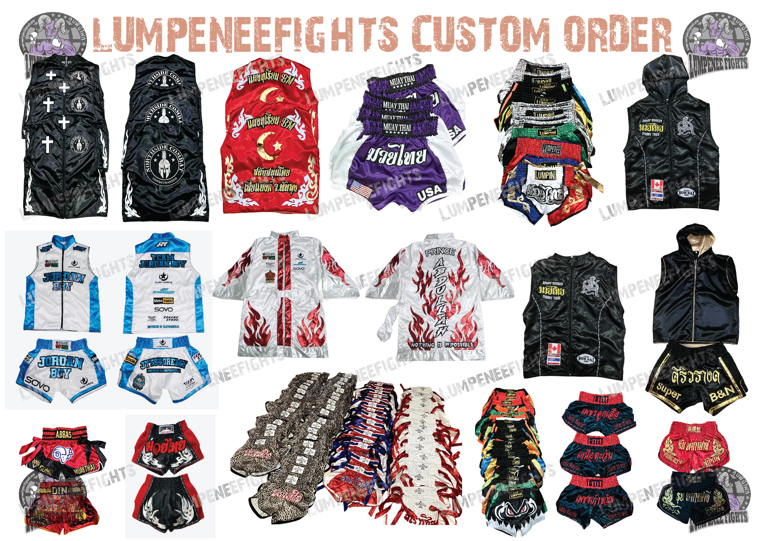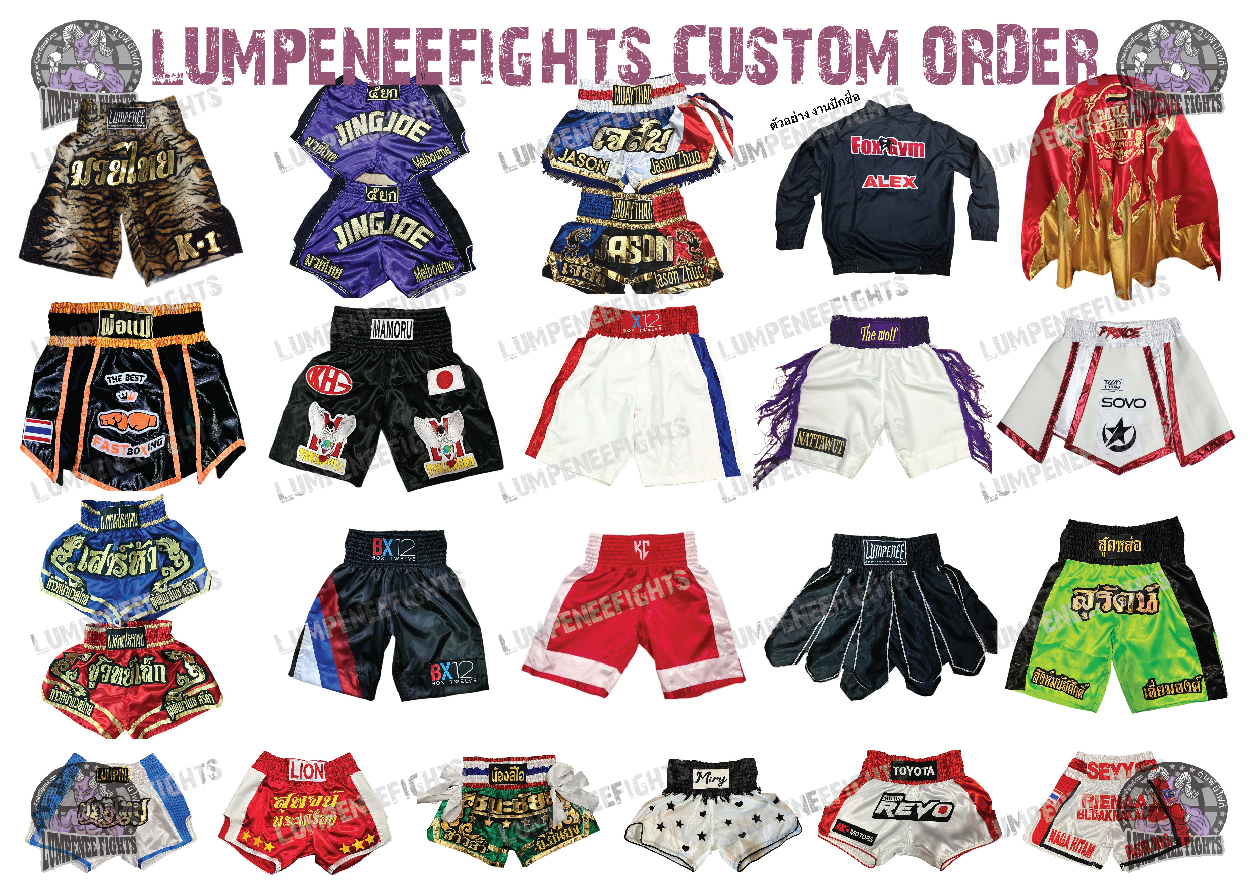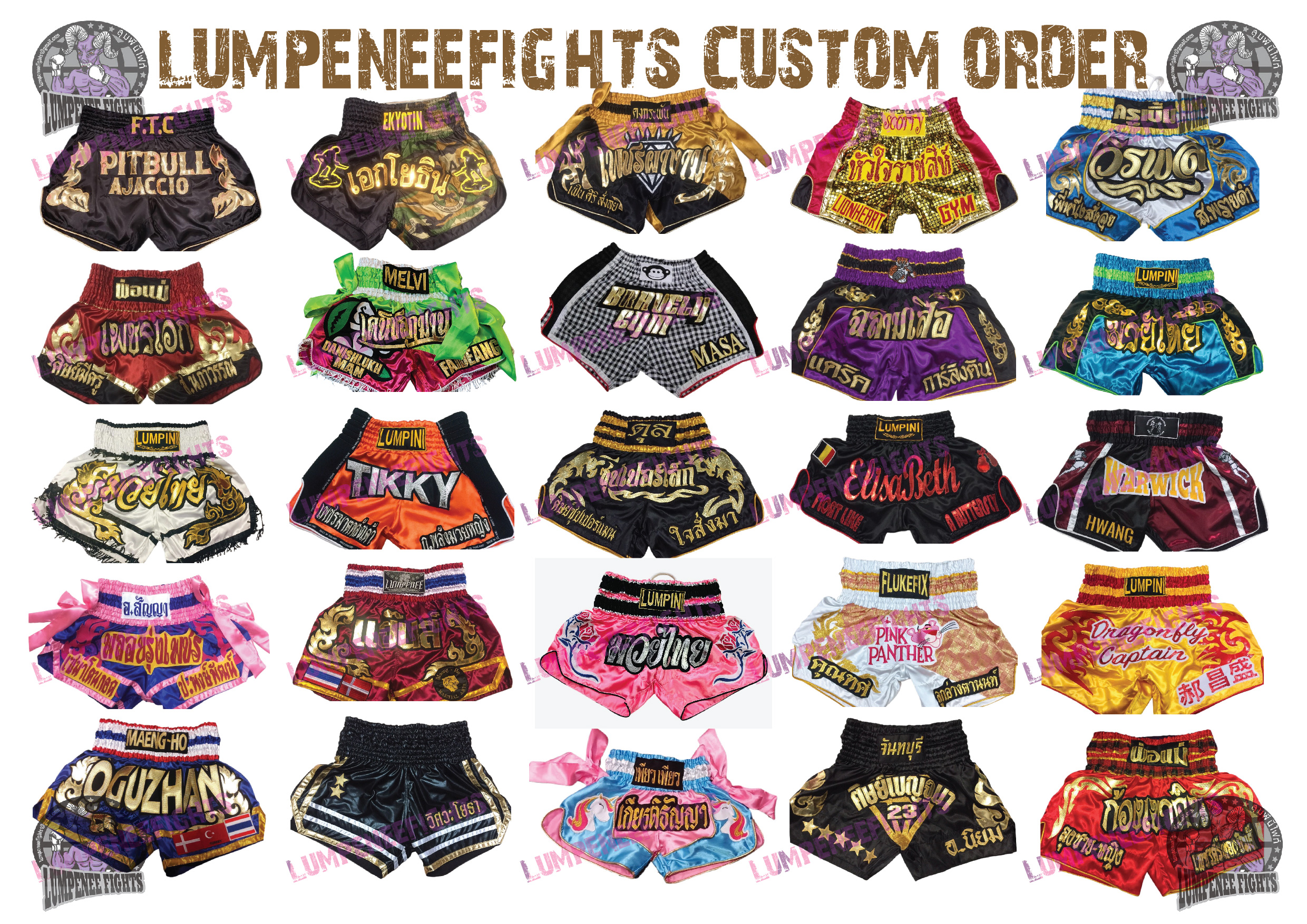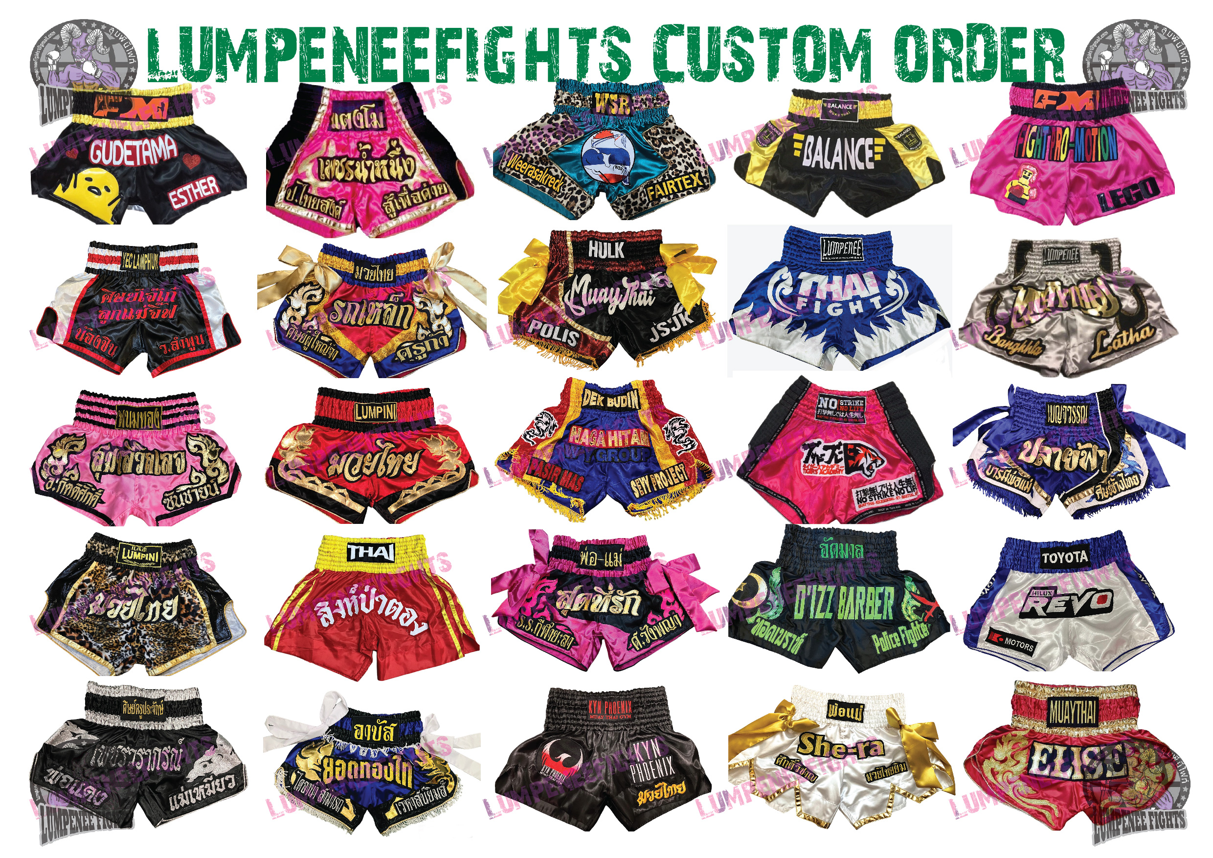 Custom Muay Thai Shorts, personalized boxing trunks by Lumpeneefights, We make premium boxing shorts for boxers and fighters around the world.